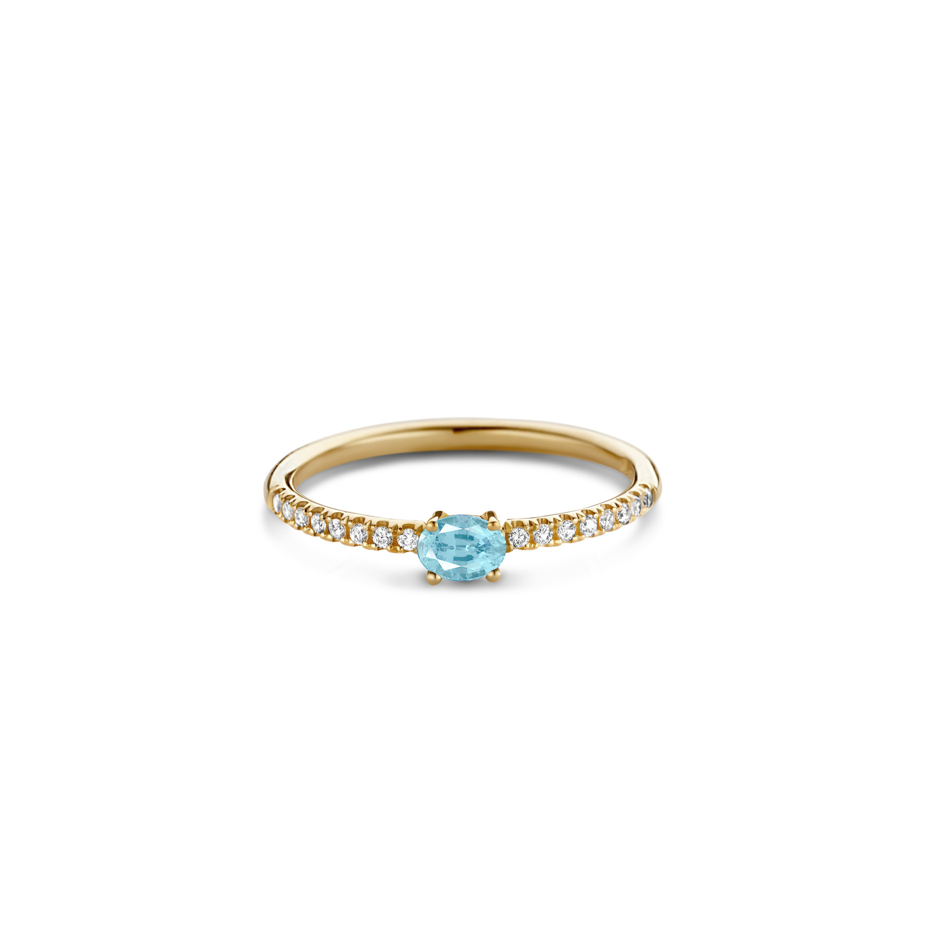 Ring Brilliantly oval ring pavé Aquamarijn