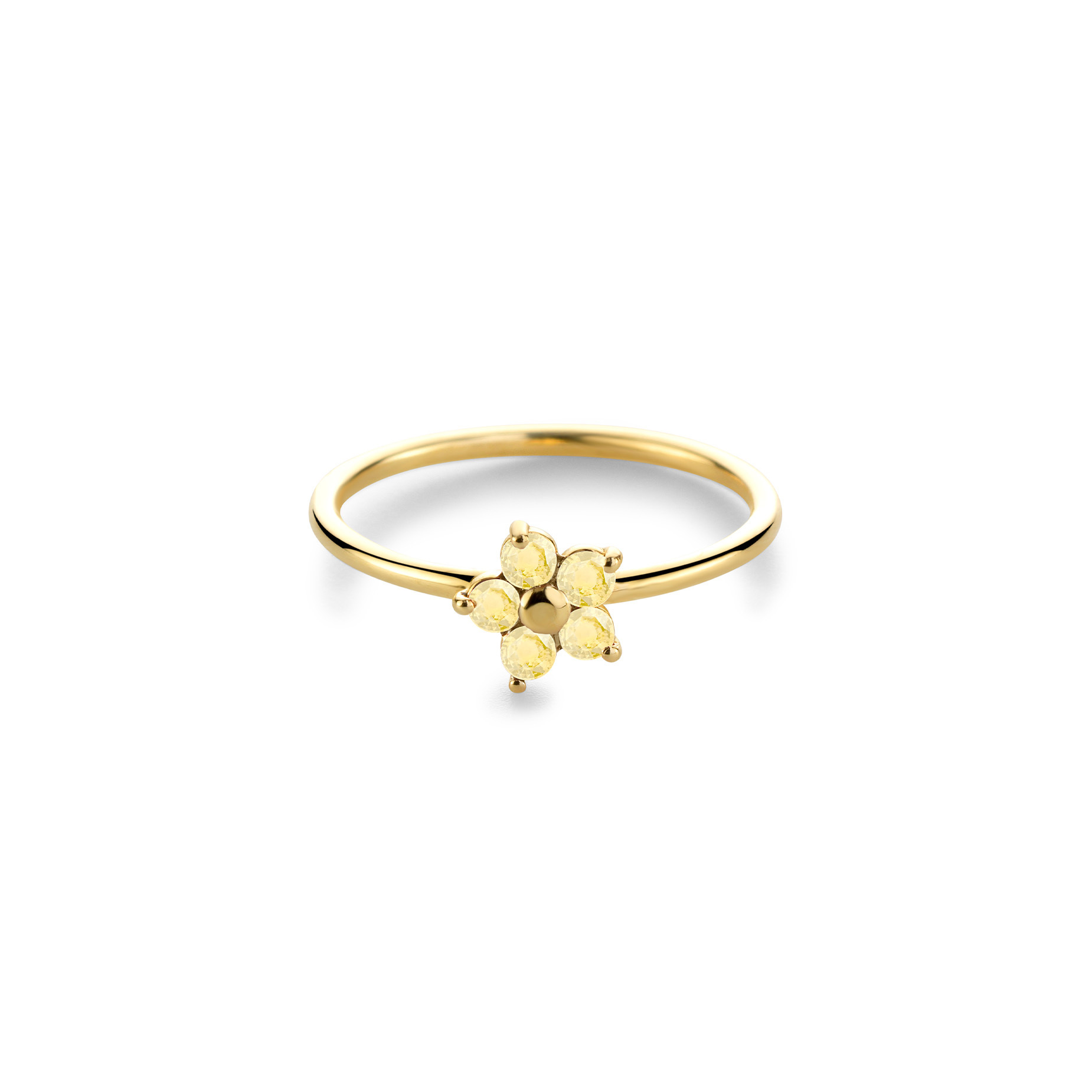 Bloemenpracht in haar mooiste vorm. De lieve bloemetjes van onze In Full Bloom collectie zijn gezet met 5 steentjes. Er is keuze uit een diamanten "bloom" of 7 verschillende kleurtjes saffier. De collectie bestaat uit ringen, hangers, colliers & oorknopjes. Leverbare goudkleuren: 14kts geel, wit en roségoud. Alle Miss Spring sieraden worden handgemaakt van verantwoord, eerlijk en 100% gerecycled goud.